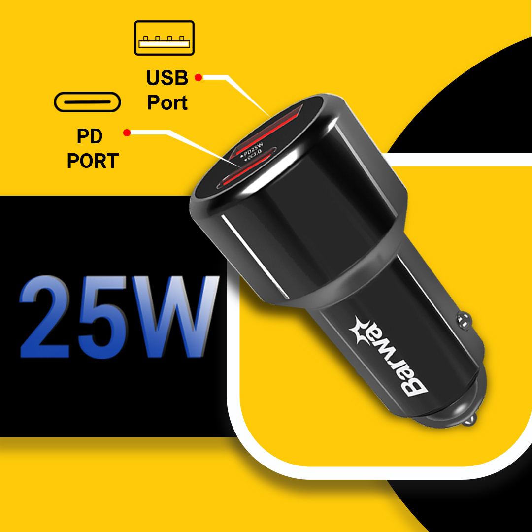 The Barwa 25W PD + QC 3.0 Car Charger (BCC-115) is engineered for maximum speed and safety. Featuring dual USB and PD ports, it delivers super-fast 25W output, supports Qualcomm Quick Charge 3.0, and is built with a fireproof, compact body perfect for every car.