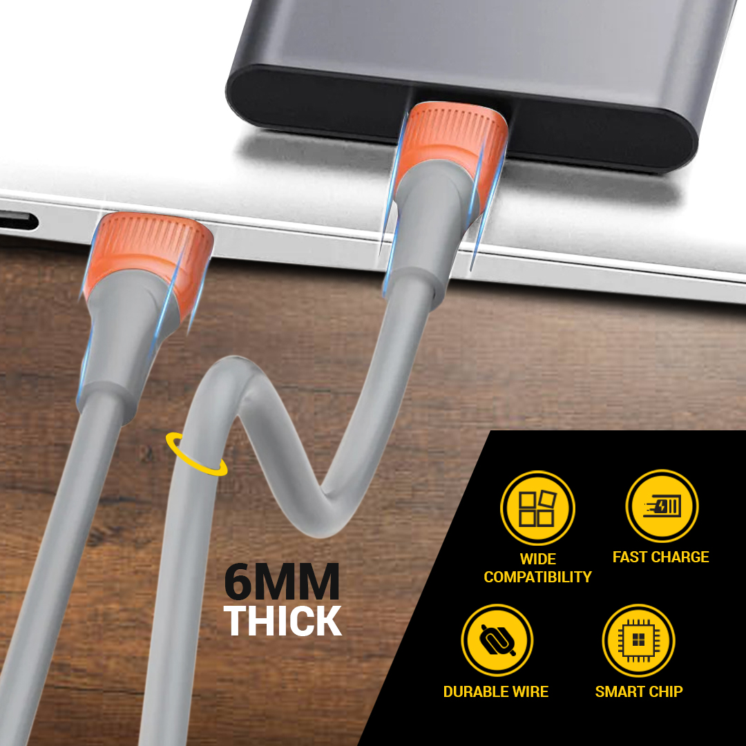 Experience high-speed charging with the Barwa BCL-42 120W Type-C to Type-C Cable. Designed with 6A current output and 6MM thickness, it ensures durability, stability, and superior charging efficiency. Built with high-toughness material and intelligent design for long-lasting performance and safety.