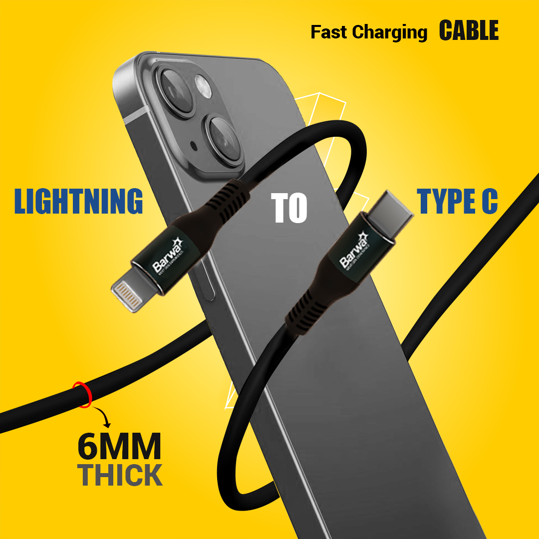 The Barwa BCL-33 Type-C to Lightning 27W Fast Charging Cable combines power and protection in one rugged design. With a 6mm thick cable, smart chip technology, and durable TPE coating, it ensures ultra-fast 3A charging, heat resistance, and long-lasting reliability for all Apple devices.
