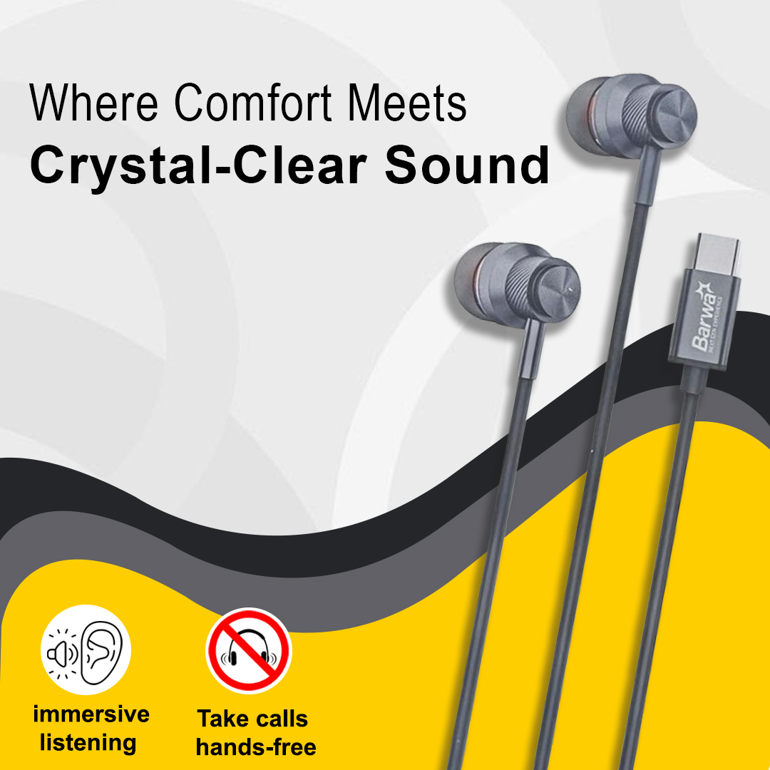 Experience immersive sound quality and comfort with the Barwa BH40 Type-C Stereo Earphones. Designed with 10mm dynamic drivers and a built-in microphone, these earphones deliver deep bass, crisp highs, and clear vocals — ideal for calls, music, and gaming.
