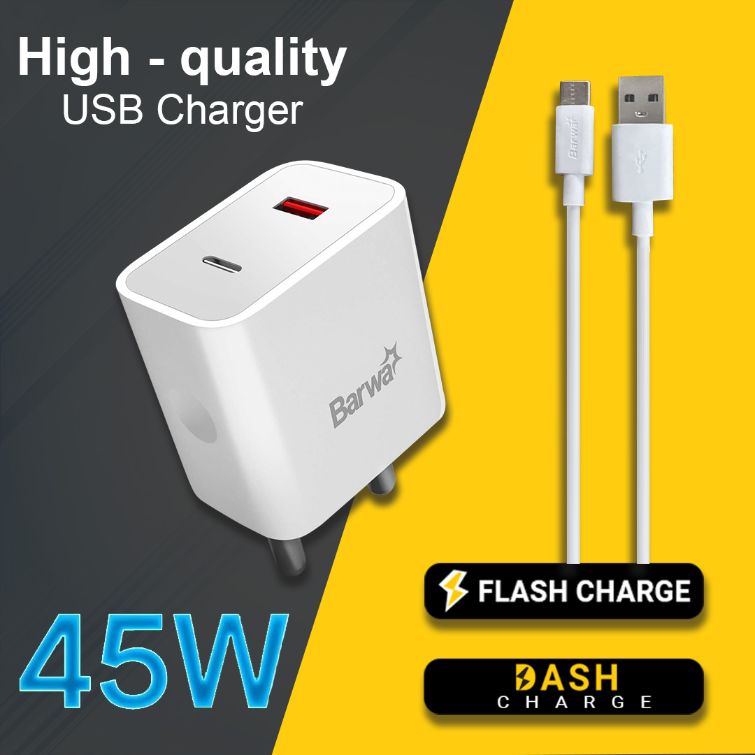 Experience next-gen fast charging with the Barwa BHC-1015 45W Super Fast Charger — engineered to deliver maximum power output safely and efficiently. With Power Delivery (PD) 3.0 and Quick Charge (QC) 3.0 technology, it supports a wide range of fast-charging protocols for smartphones, tablets, and accessories.