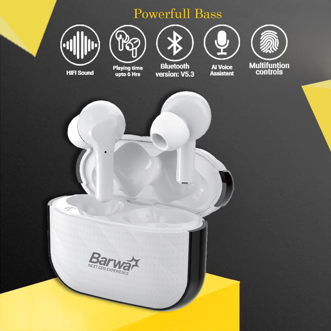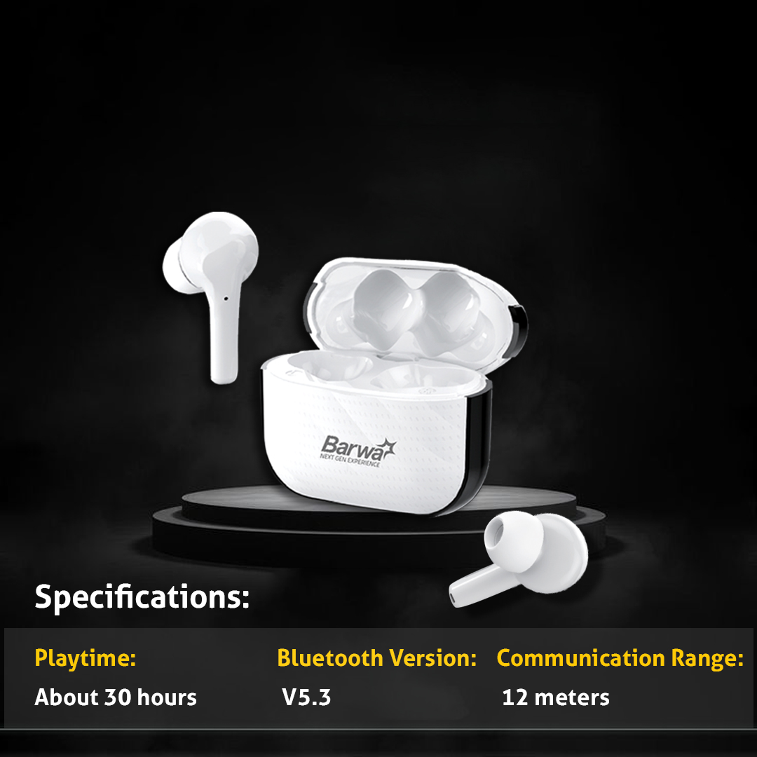 Upgrade your listening experience with the Barwa BM19 True Wireless Earbuds — engineered for powerful bass, clear vocals, and extended playtime. With 30 hours of total battery life and modern Bluetooth 5.3 connectivity, these earbuds are designed for performance, comfort, and reliability.